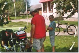 sind wir schnell von Kindern umgeben, die unsere Fahrräder begutachten.