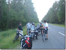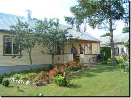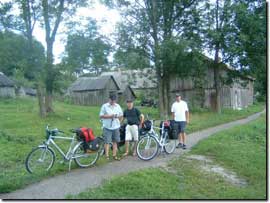 Das Wetter ist weiterhin auf unserer Seite und die Straßen werden auch wieder besser, je näher wir dem Fluss Nemunas kommen. Plötzlich, wir haben ungefähr die russische Grenze in Höhe von Sovetsk, dem früheren Tilsit erreicht, werden wir von Motorradfahrern überholt, die kurz darauf anhalten. Es sind tatsächlich unsere Freunde aus Hamburg, die bis hierhin also auch noch nicht weiter als wir gekommen waren. Wir nehmen diese erneute Begegnung zum Anlass, unsere Adressen auszutauschen, mit dem Versprechen, sich nach der Baltikum-Reise in Verbindung zu setzen. Dies ist dann auch das letzte Mal, dass wir sie sehen. Wir wünschen ihnen viel Glück auf dem Weg nach Riga, wo für sie die Fähre zurück nach Deutschland wartet. Nach gut 75 km fahren wir am späten Nachmittag in den Ort Viešvile hinein. Eugens Tochter hatte im Internet nach Übernachtungsmöglichkeiten gesucht, und wir erinnerten uns, dass eine Adresse in Viešvile darunter war. Schon gleich an der Ortseinfahrt werden wir auf eine Ansammlung von Fahrrädern aufmerksam, die an einen Zaun gelehnt steht. Schon treffen wir die Fremdenführerin der deutschen Reisegruppe aus Priekule, die mit ihrer Gruppe einen kleinen Zwischenstopp eingelegt hat. Auch wir sind hier genau richtig, denn Aldona (Tel.: +370 68759266) vermietet nicht nur äußerst preisgünstig an vorbeifahrende Touristen, sondern sie versteht es auch, sie gut zu bewirten. |