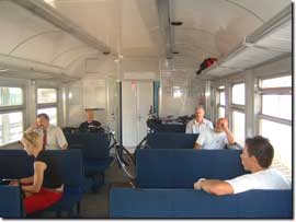 die Räder sind im fast leeren Abteil schnell verstaut. Uns fällt